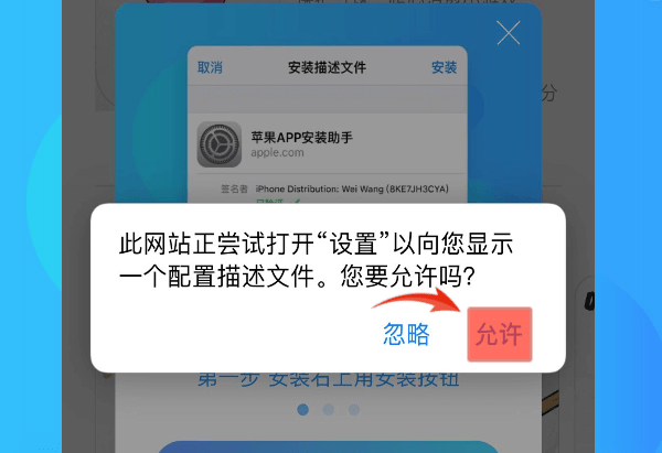 Stap 1, sta toe om het configuratieprofiel te openen